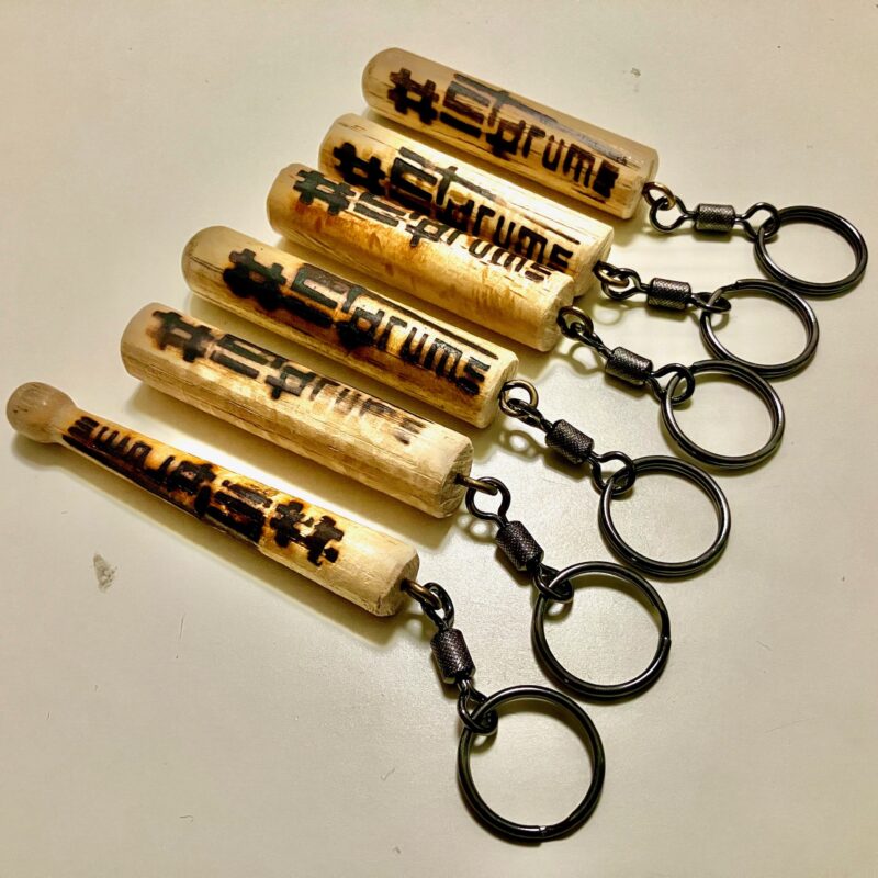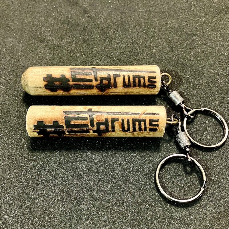 #STDRUMS ロゴを実際に折れたスティックへ焼印したオリジナルキーホルダー。
